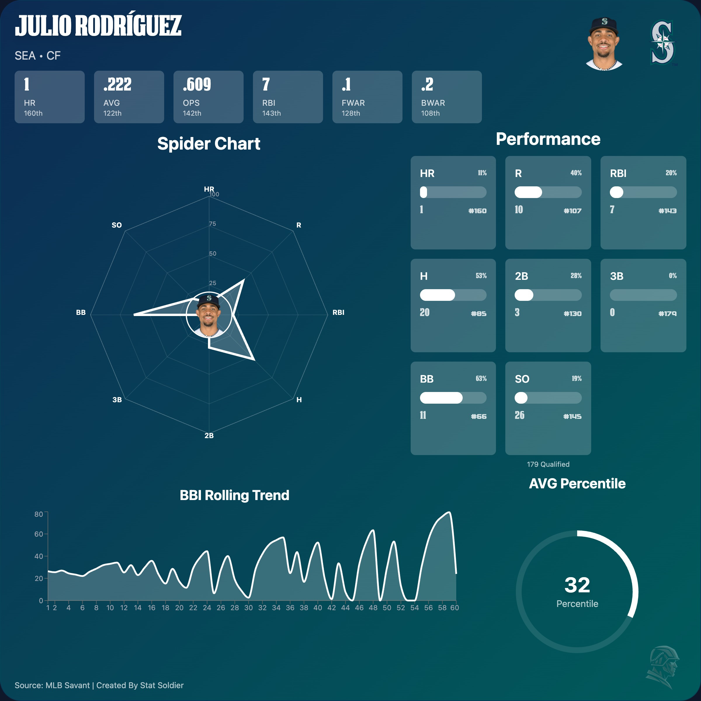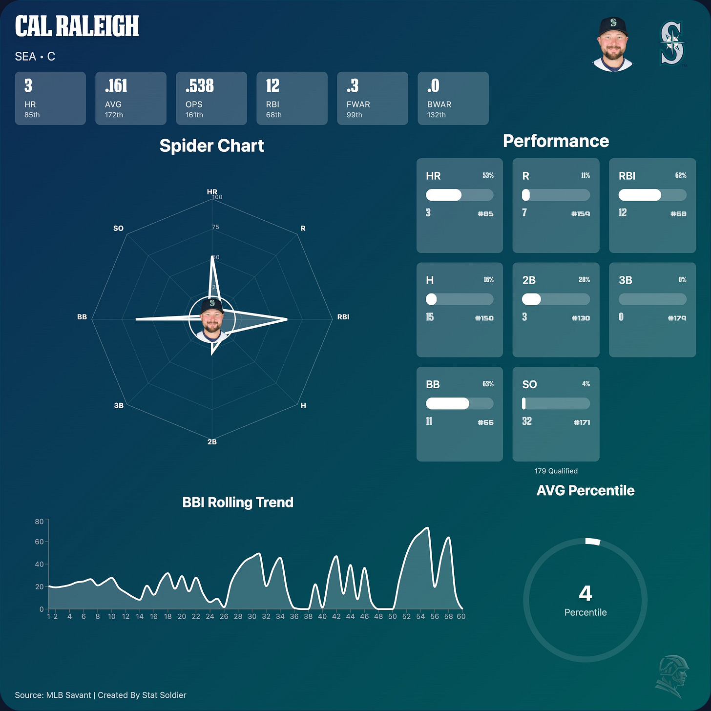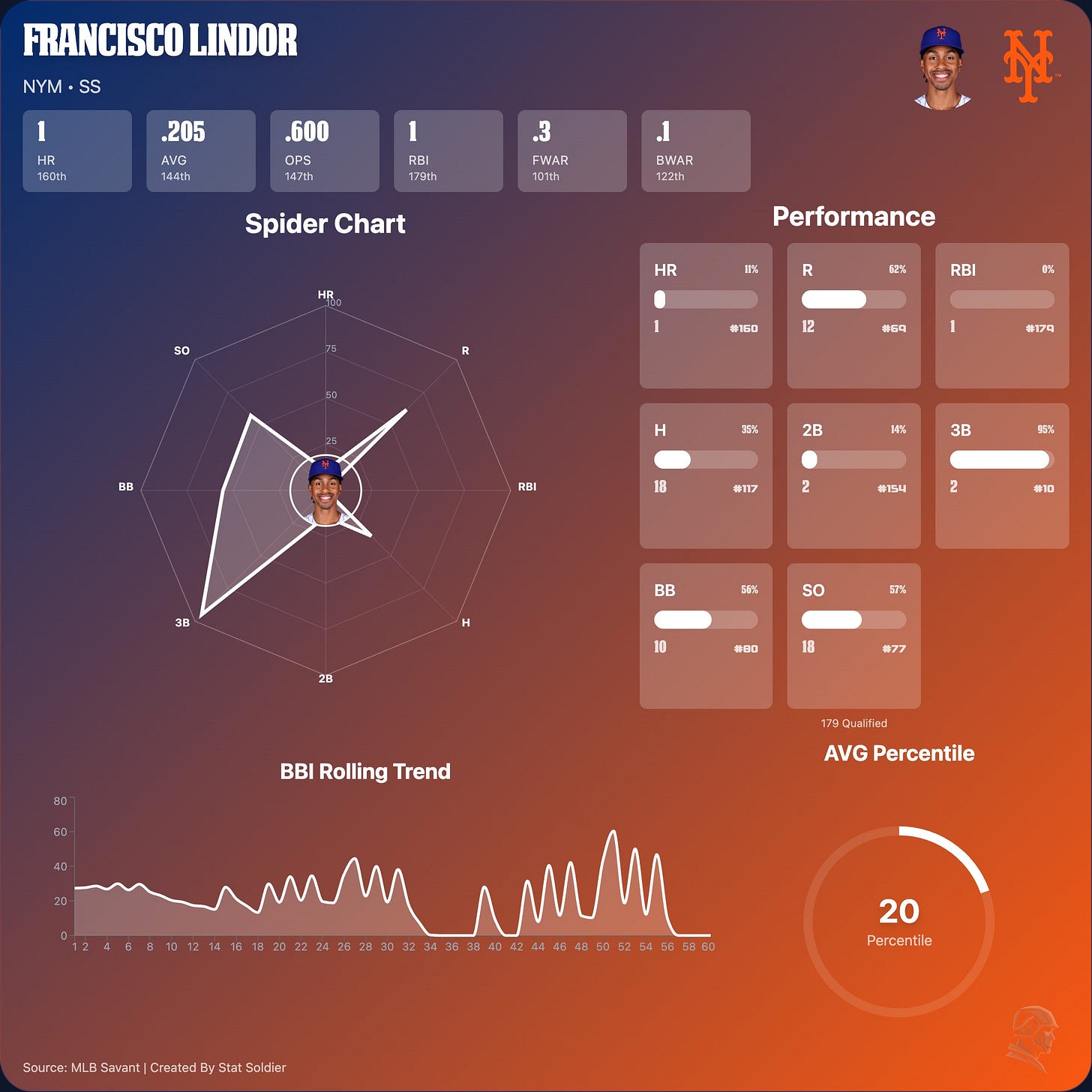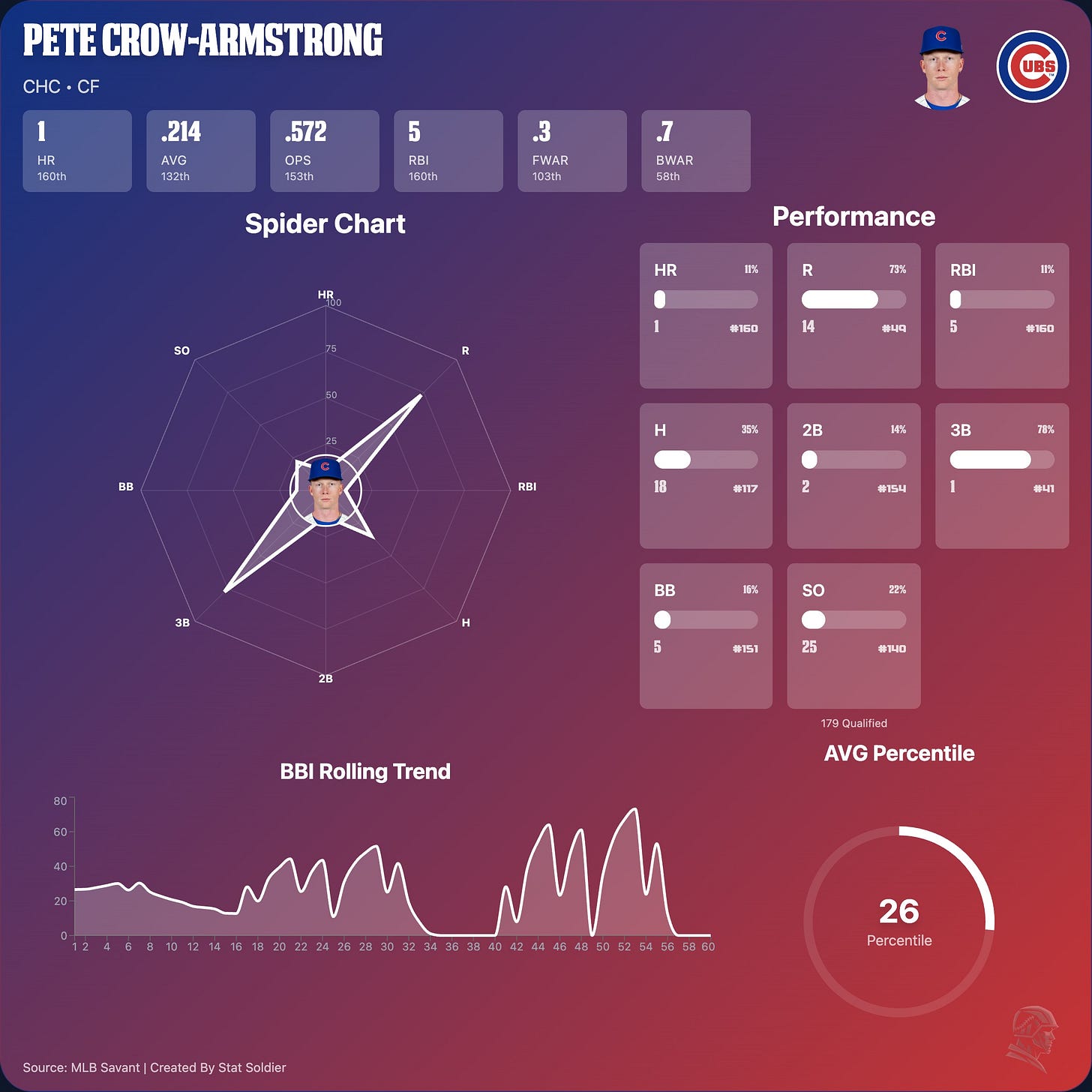 2026 Stats - 93 AB | 7 R | 3 HR | 12 RBI | 1 SB | 11 BB | .161 AVG | .538 OPS | 60 wRC+ | 0.3 fWAR