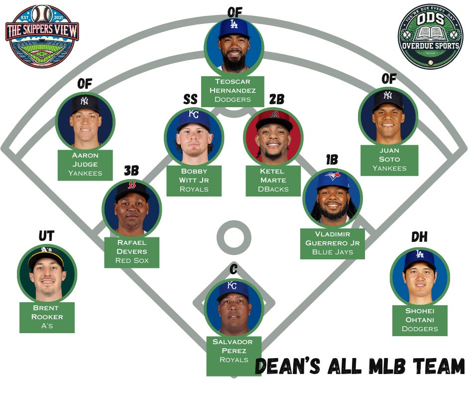 You are probably wondering, “Where are Brett’s selections?” I was wondering that myself, and I gave a few reminders of when they were due. Yet, they never came. So, quick shout out to Overdue Sports, who, WHILE PREPARING FOR HIS WEDDING THAT HAPPENED YESTERDAY, was able to make the template for these graphics and send in his All-MLB selections. *round of applause*