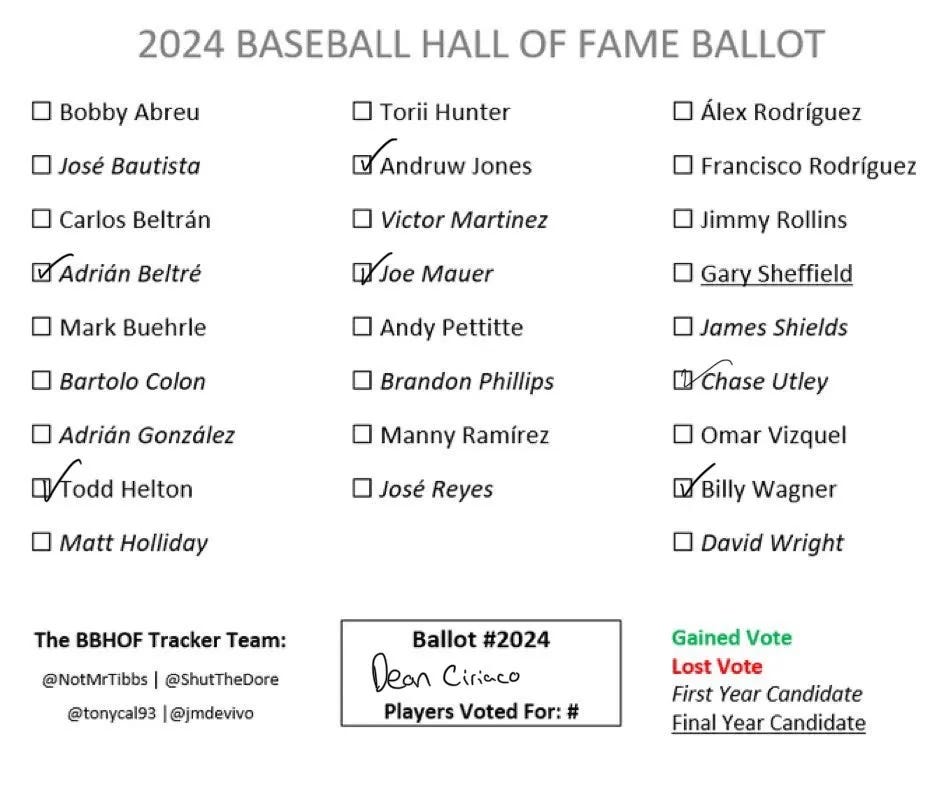 Hello and welcome to my second annual “Dean Ciriaco Hall of Fame Ballot Breakdown.” I will throw my ballot down below from last year so you can all see where my head was at.