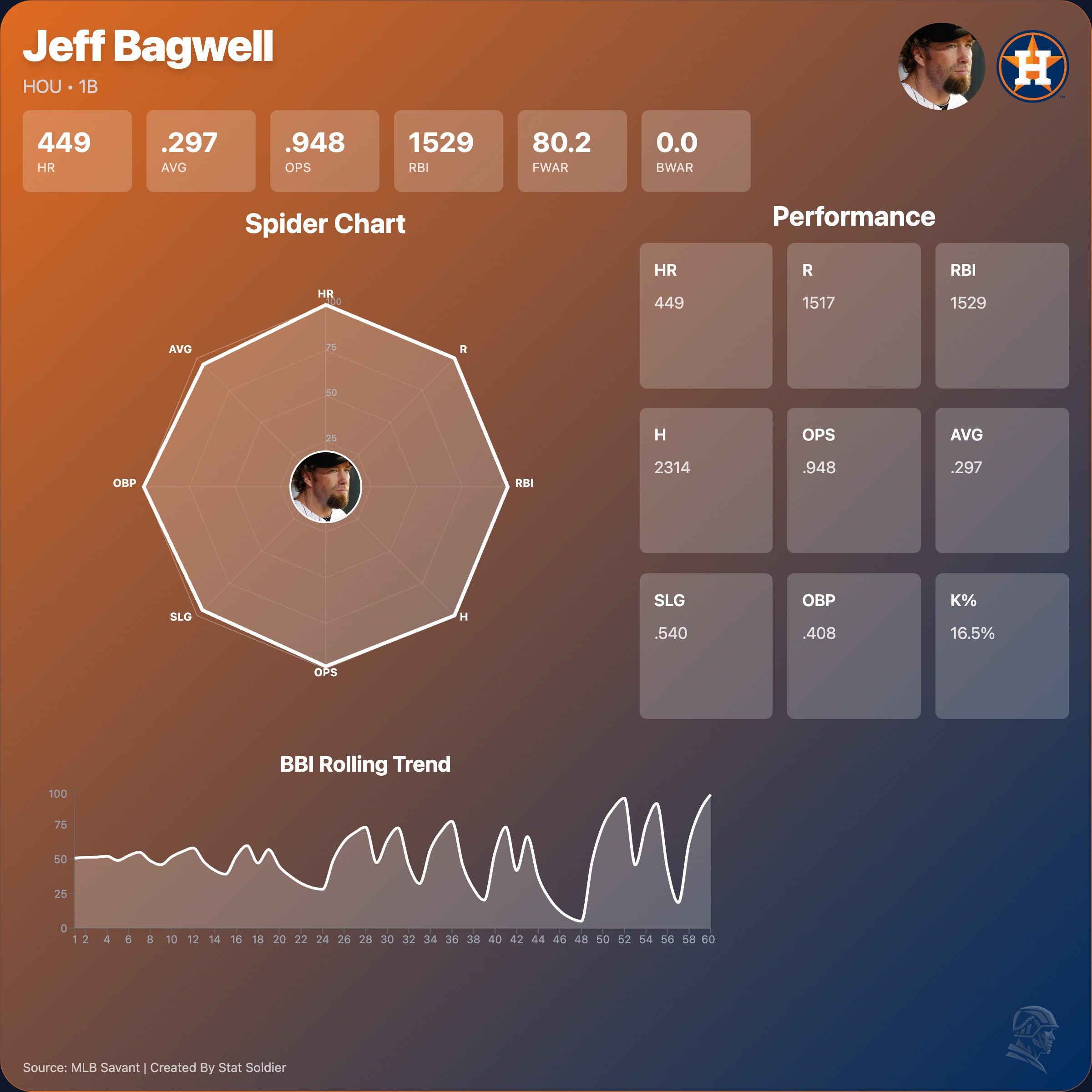 Why: When I did this list last year, Freddie Freeman had this spot. Over that time, I began to appreciate Bagwell’s numbers more. Since I used WAR7 and JAWS as reference numbers, it was inconsiderate of me to leave Bagwell off this list. He was receiving MVP votes into his 30s, where other players (Eddie Murray being one) dropped off after hitting the big 3-0.
