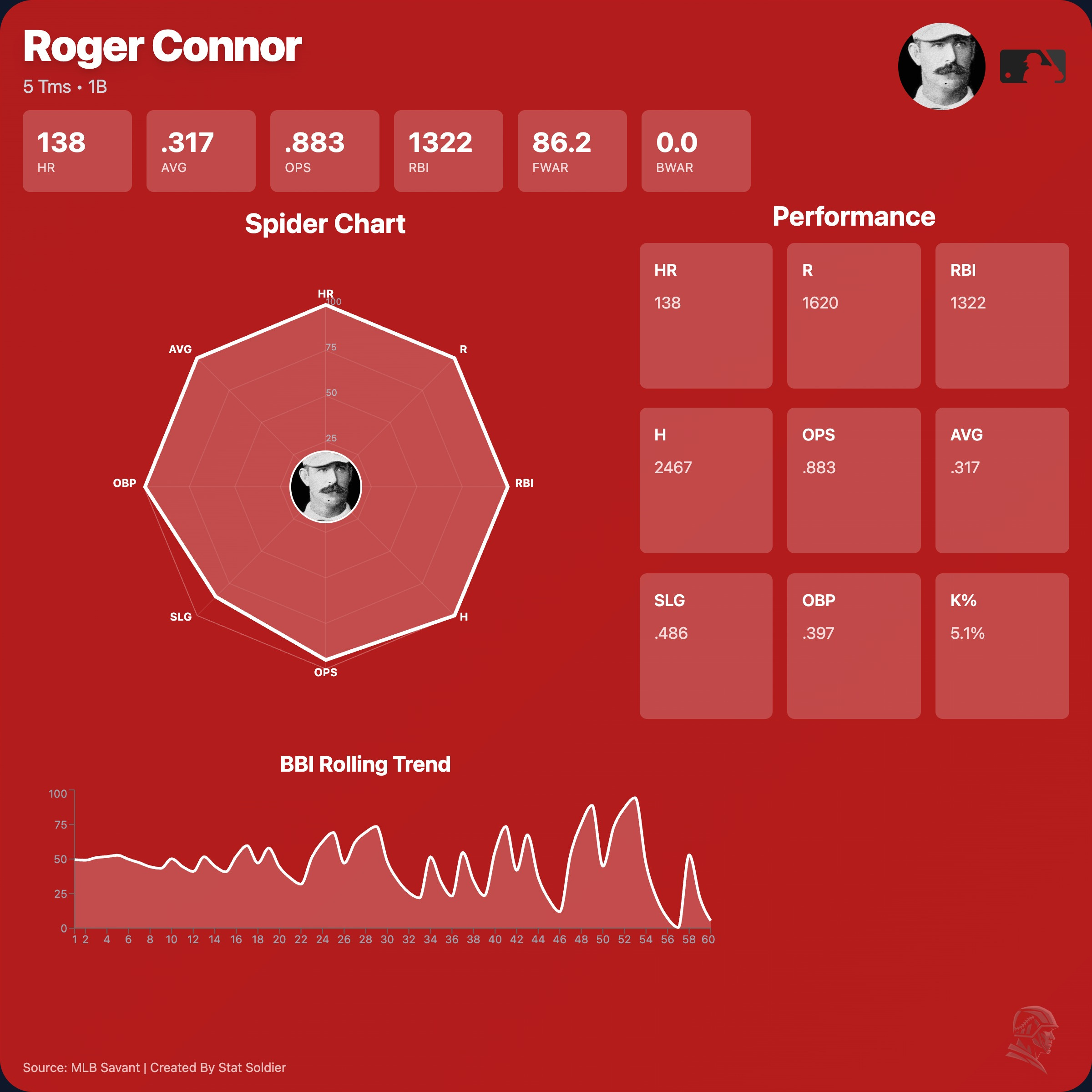 Why: Connor was Babe Ruth before there was Babe Ruth. He was baseball’s home run king for 23 seasons before the Babe broke it in 1921. He also happens to have the most dWAR of any first baseman in history. He also won two National League Championships, and his counterpart Cap Anson won ZERO.