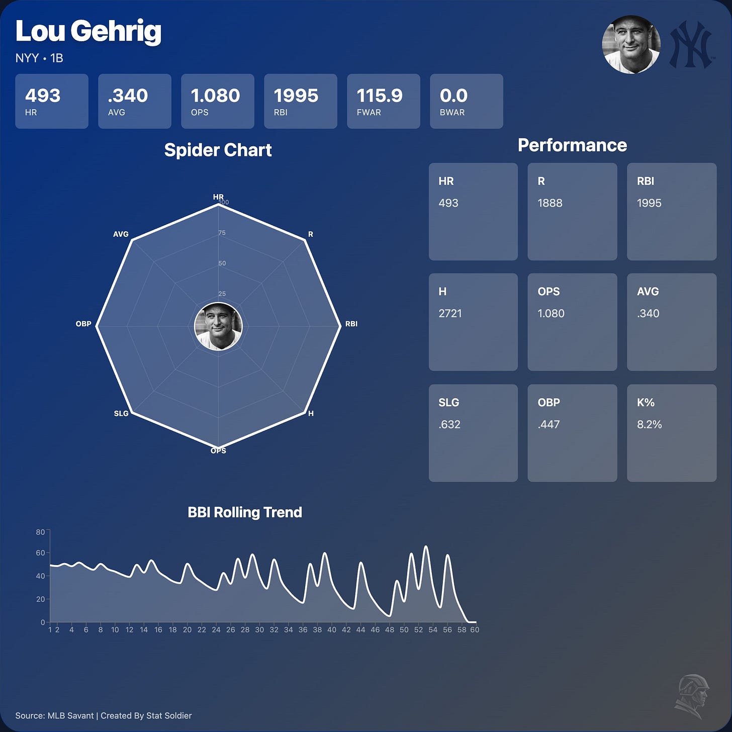 Accolades: 2 MVPs, 7x All-Star, Triple Crown (1934), 6x World Series Champion