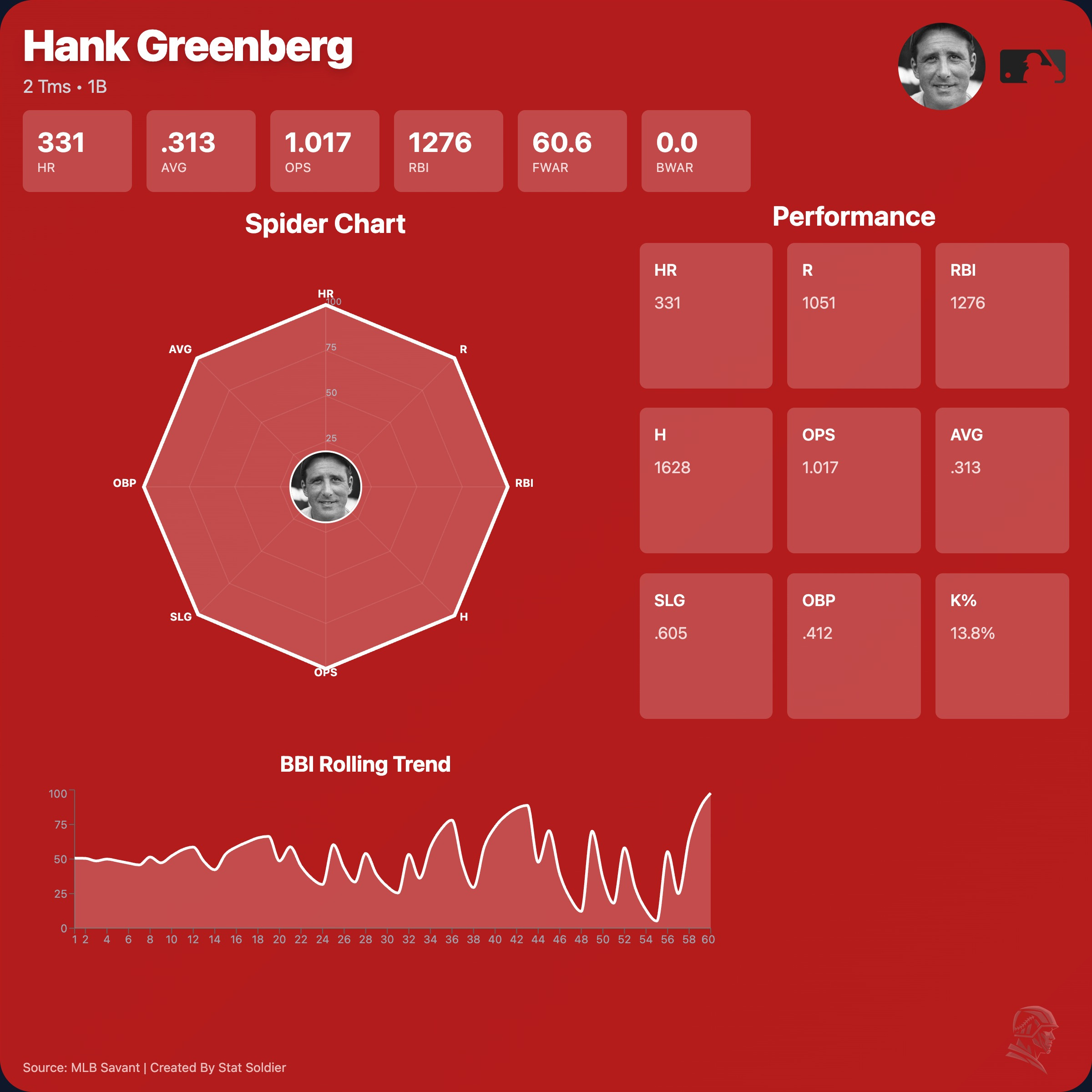 Key Stats: .313 AVG, 331 HR, 1,276 RBI, 1.017 OPS