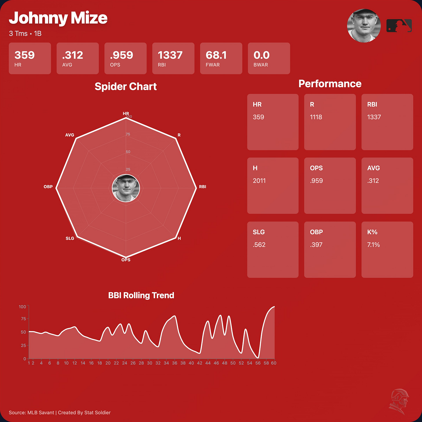 Key Stats: .312 AVG, 359 HR, 1,337 RBI, .959 OPS