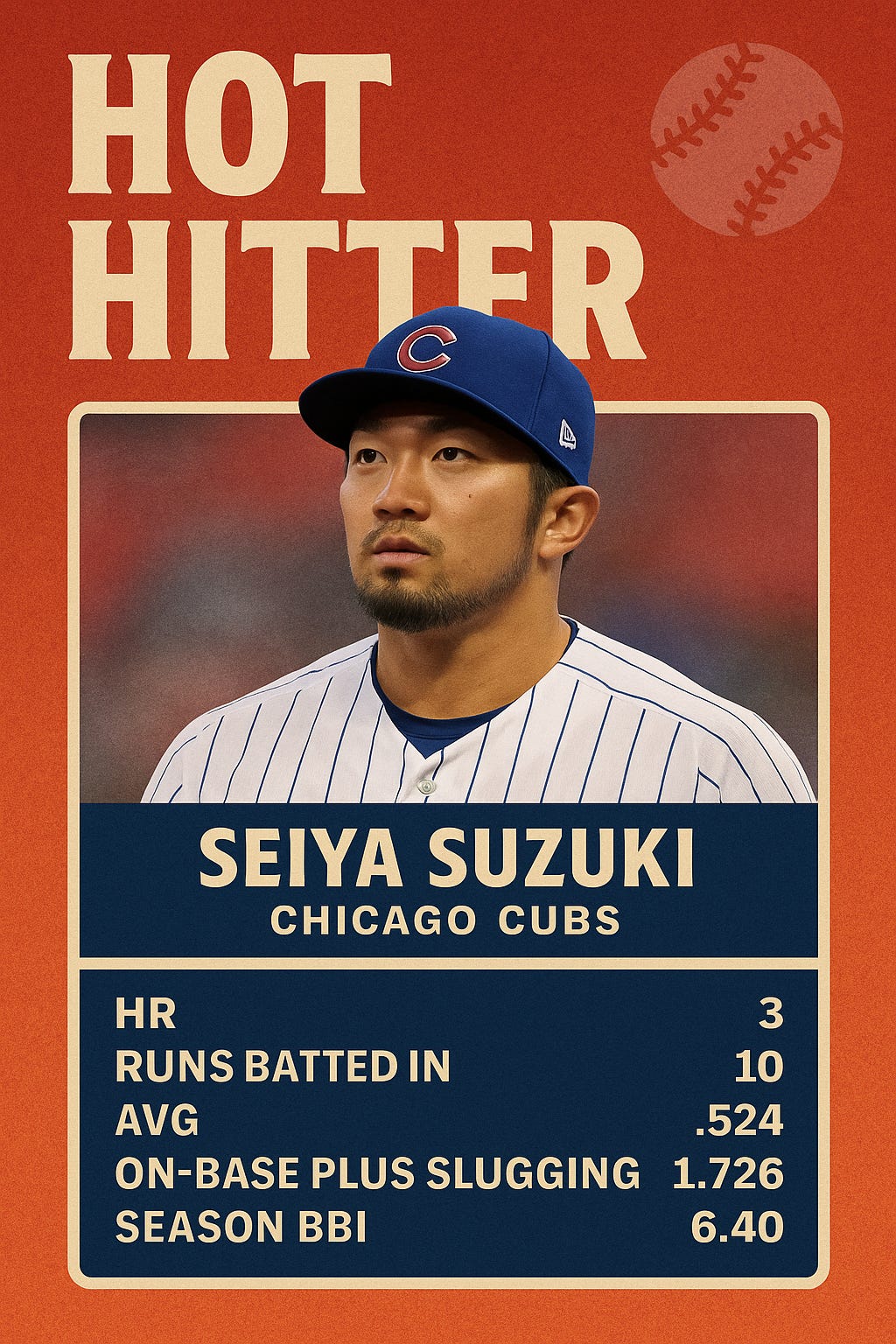 Another week, another list of hot and cold hitters from me. I played around with Chat GPT to try and make player cards for each person, but they look weird.