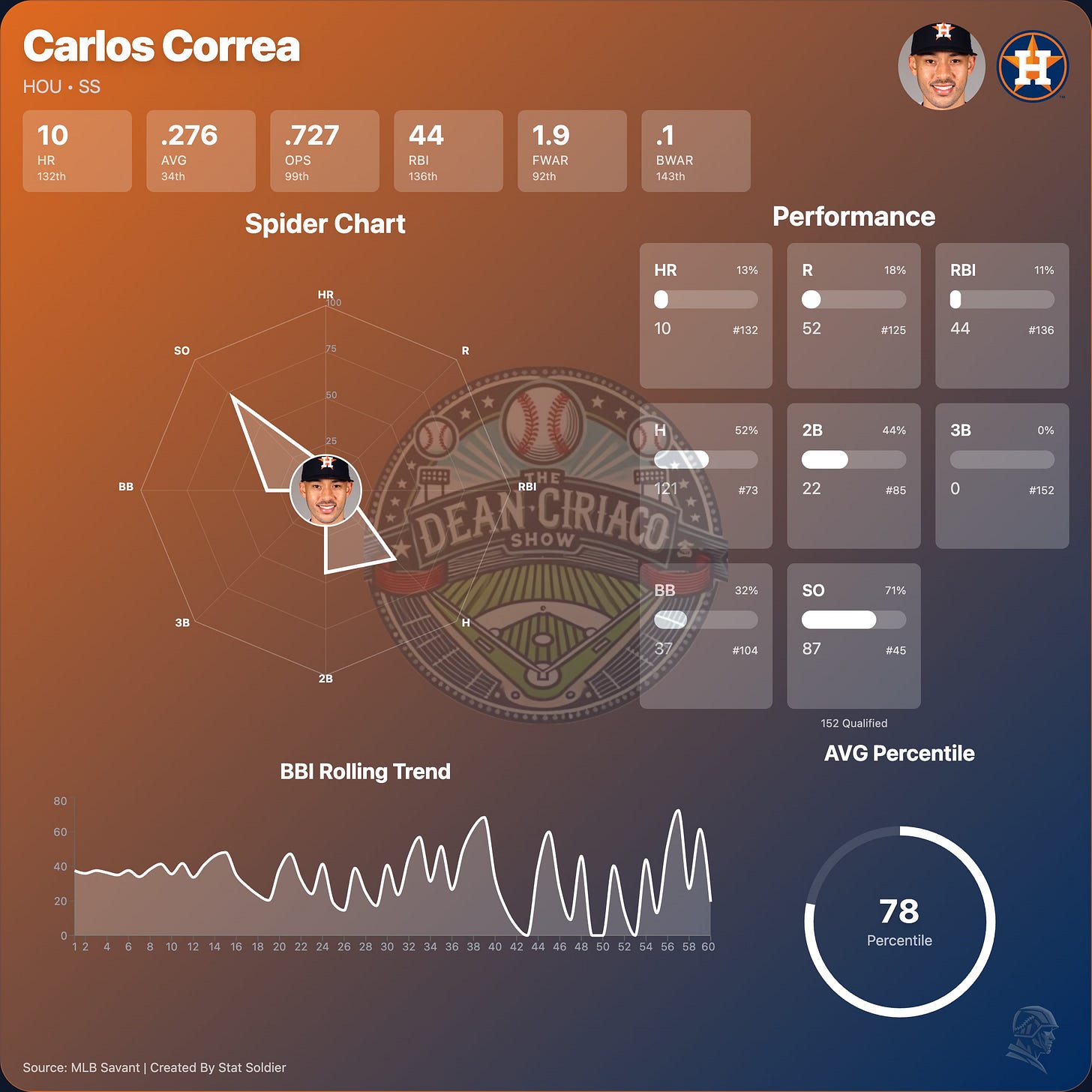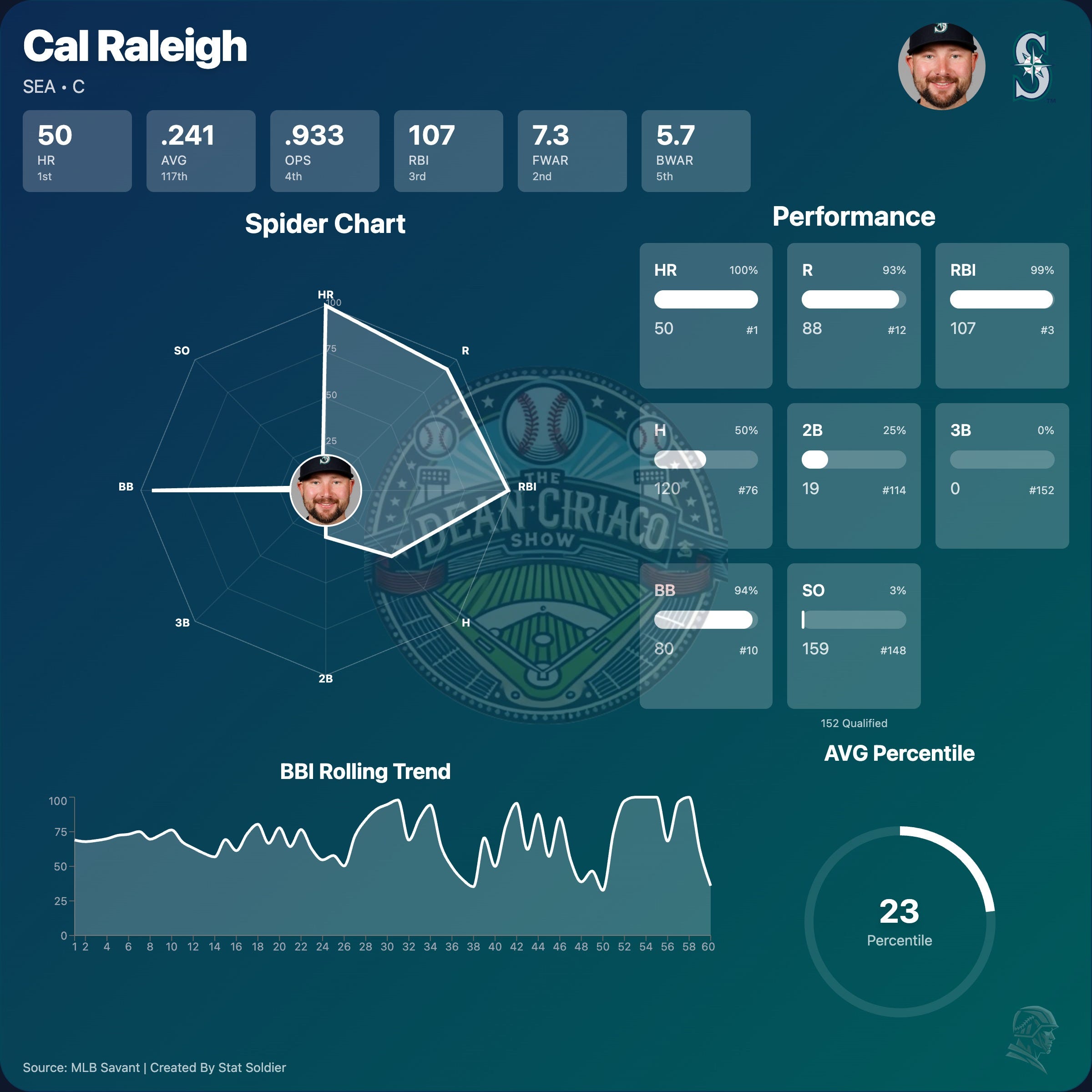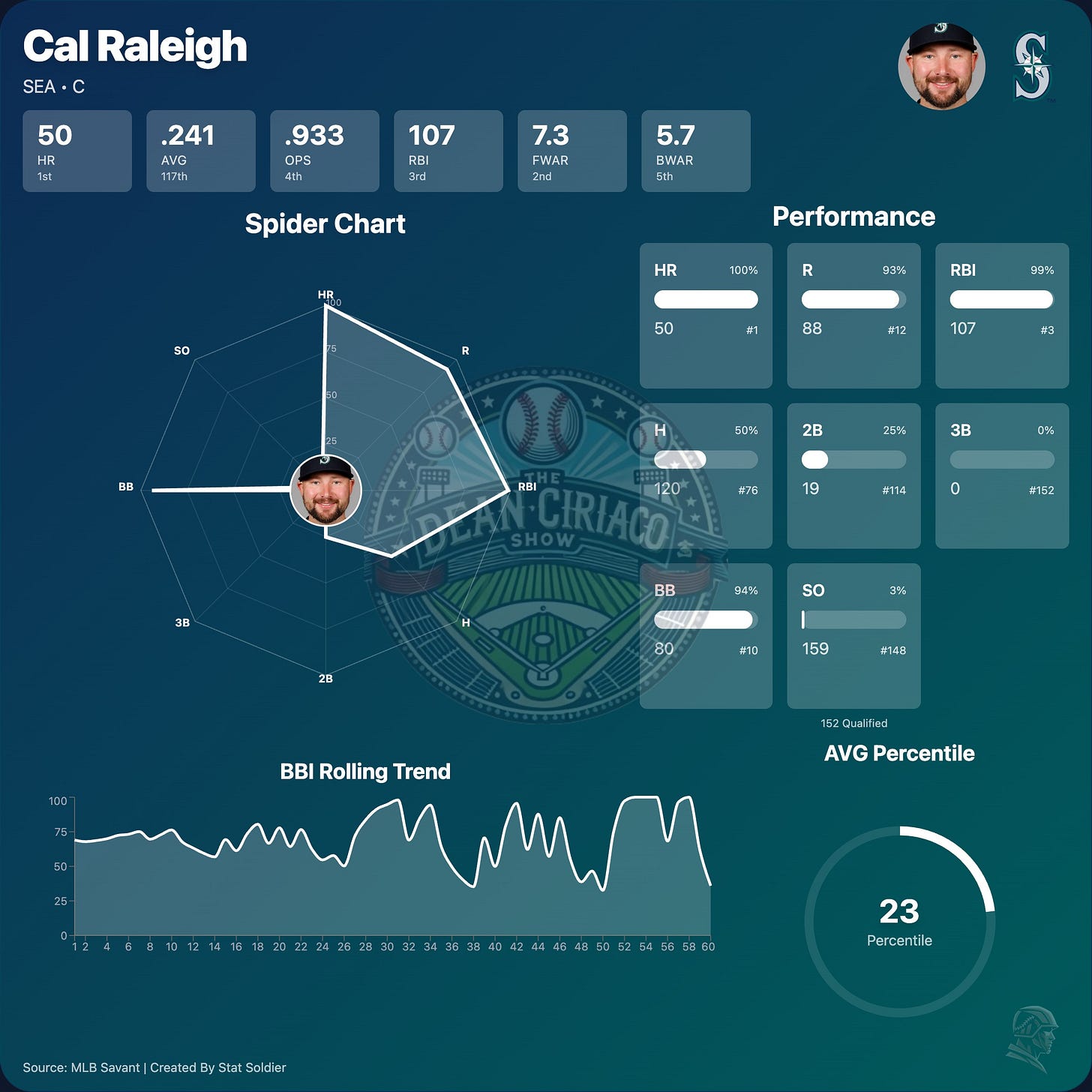 This weeks list of hot and cold hitters is full of stars. Particularly on the cold list, as we see Cal Raleigh on here for I believe the third time. He still has my vote for MVP, but he sure is a streaky player in terms of average.