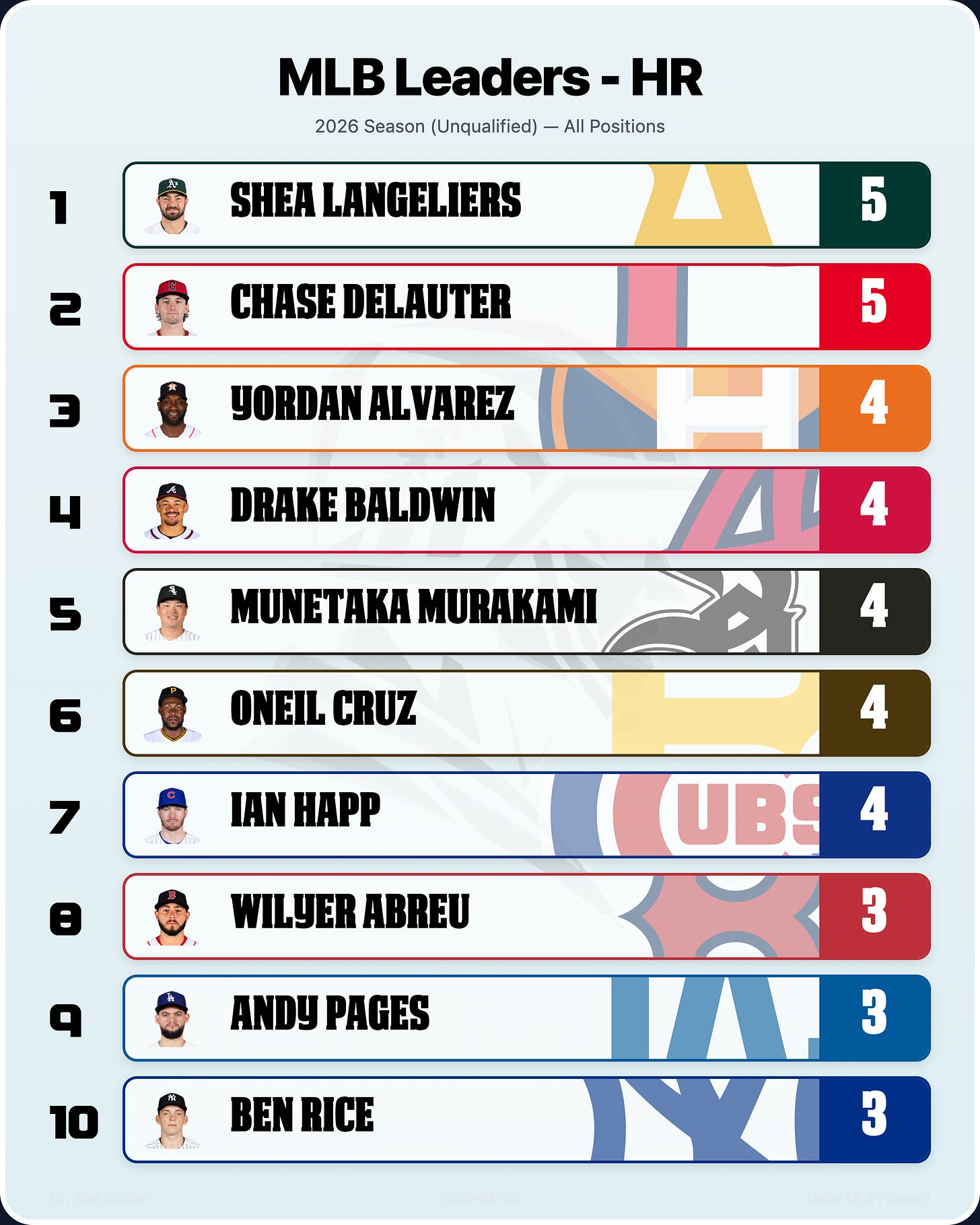 You will typically see bigger names on this list, as that is where I tend to focus my attention. I’m sorry, but TJ Friedl having a bad week doesn’t mean as much as Trevor Story having a bad week. There are levels to this.