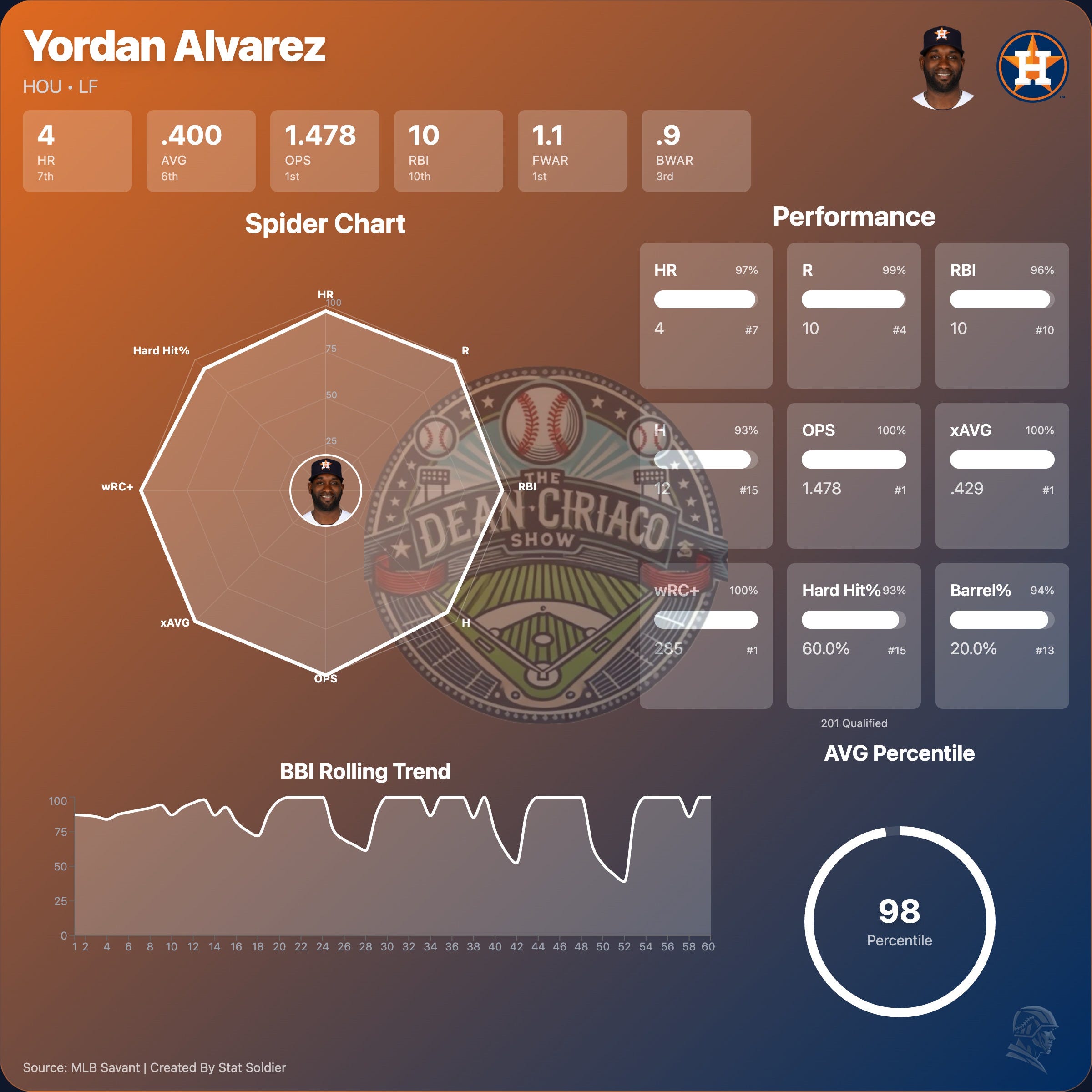 On-base Plus Slugging (OPS): 1.173