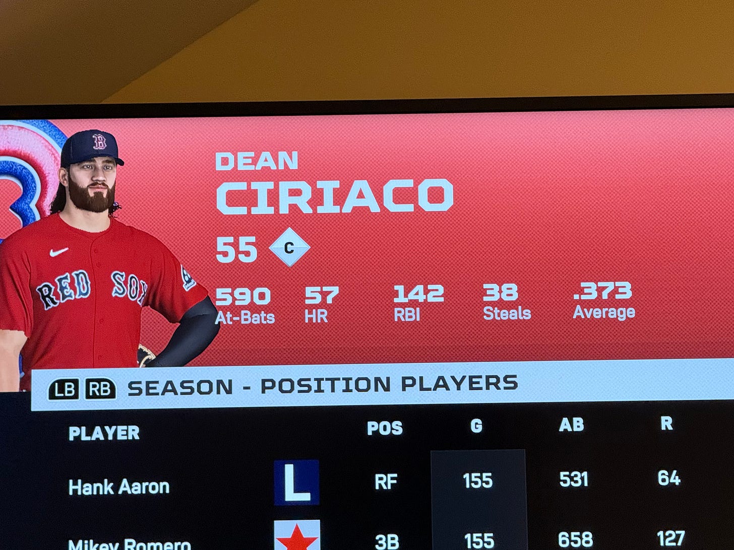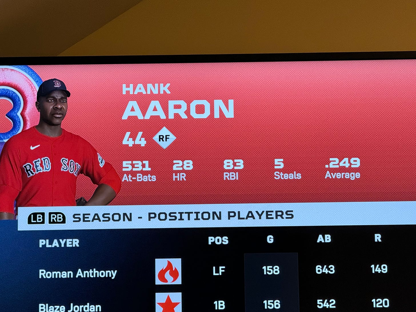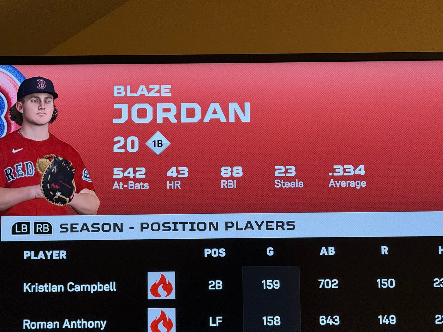 The photos below don’t give the complete picture as to everyone’s stats, so I added the award winners and league leaders below. For me, Roman Anthony was far and away the MVP. He had 106 SB, 60 doubles, and 61 home runs. He led the league in WAR, OPS, Slugging, RBIs, and also batted .365. He came away with the Hank Aaron Award, GG, and SS, but I still think Bello robbed him.