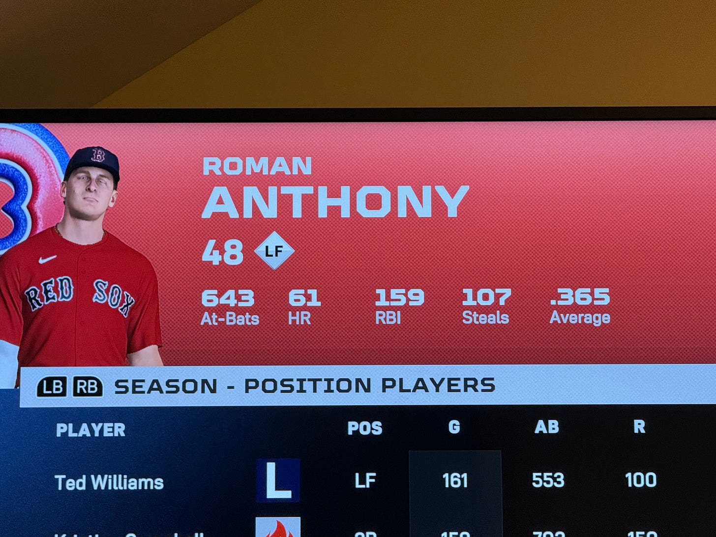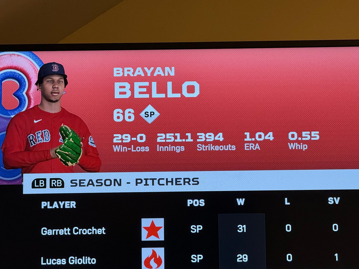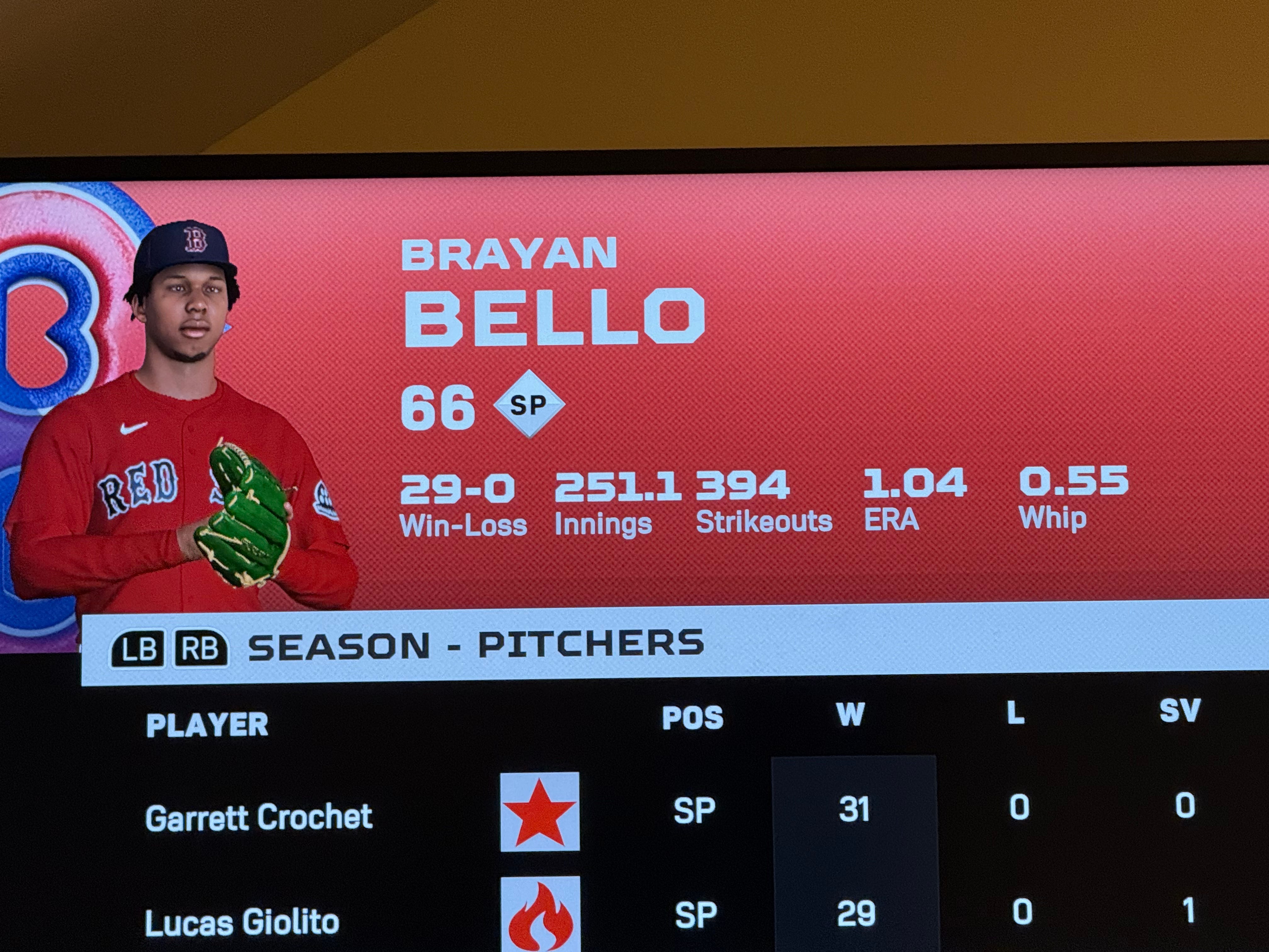 Now, Bello was great, don’t get me wrong. He set the single-season strikeout record with 394 and honestly could have thrown 450 if I didn’t put him on an innings limit. I just don’t think he was as big a game-changer as Roman Anthony.