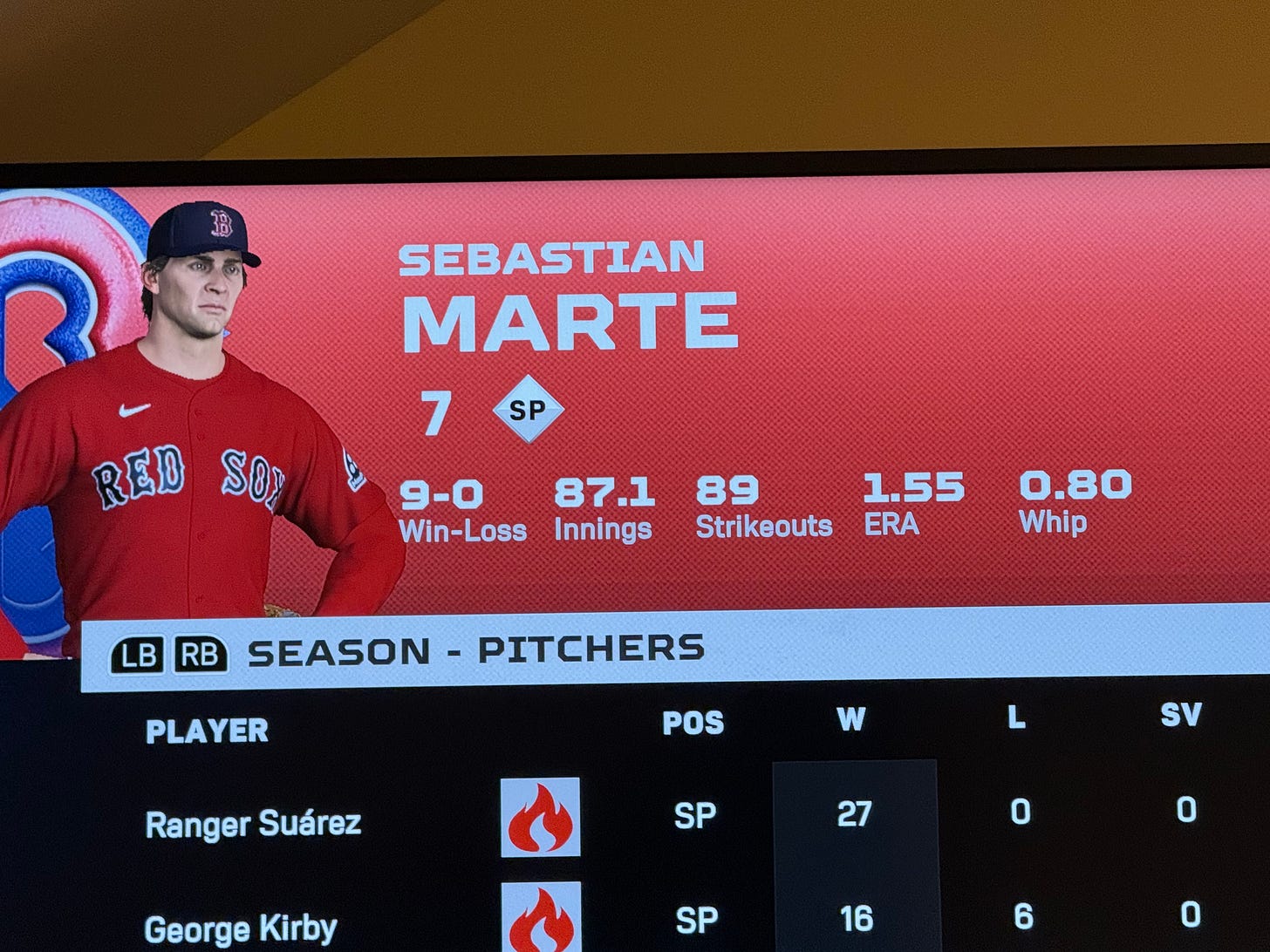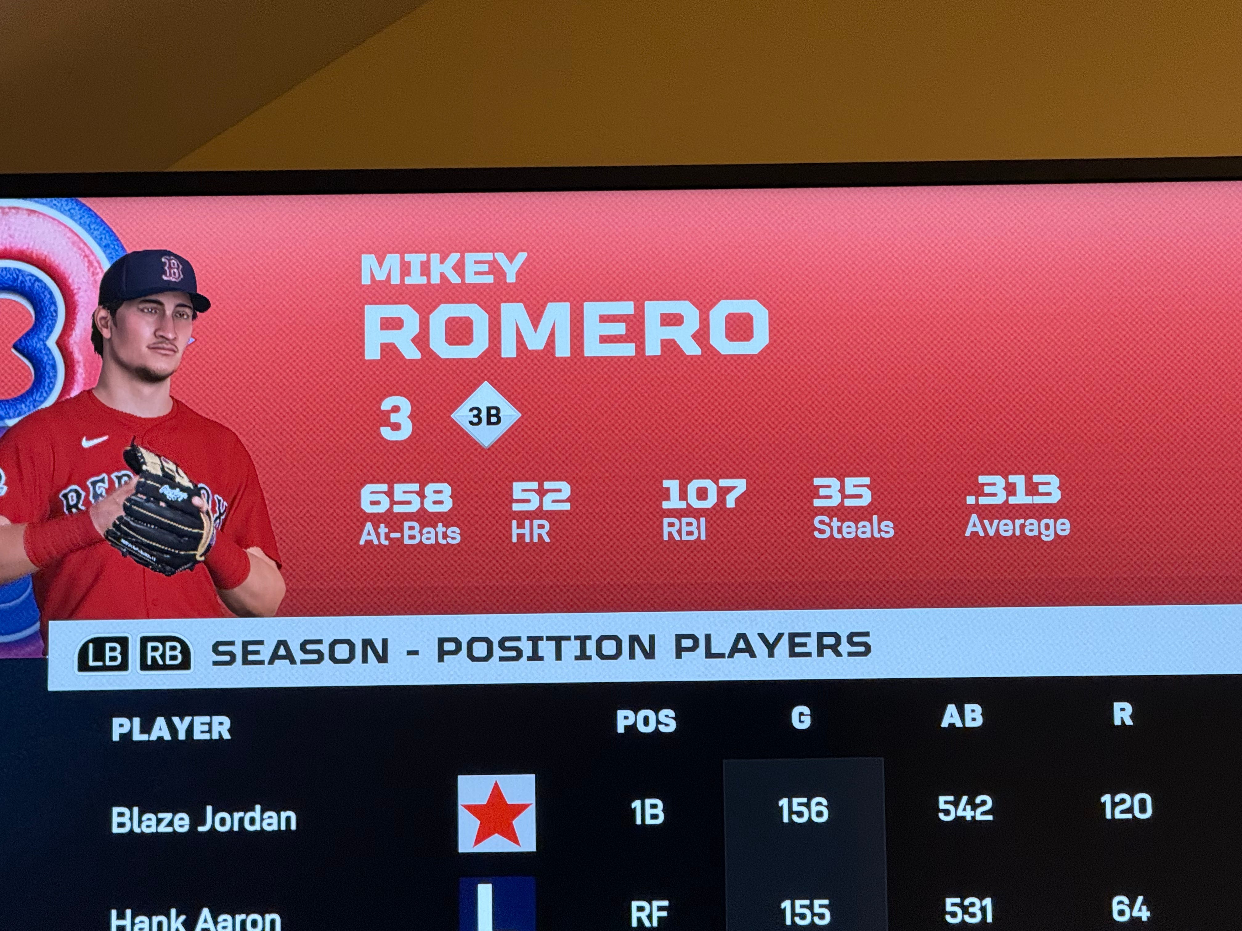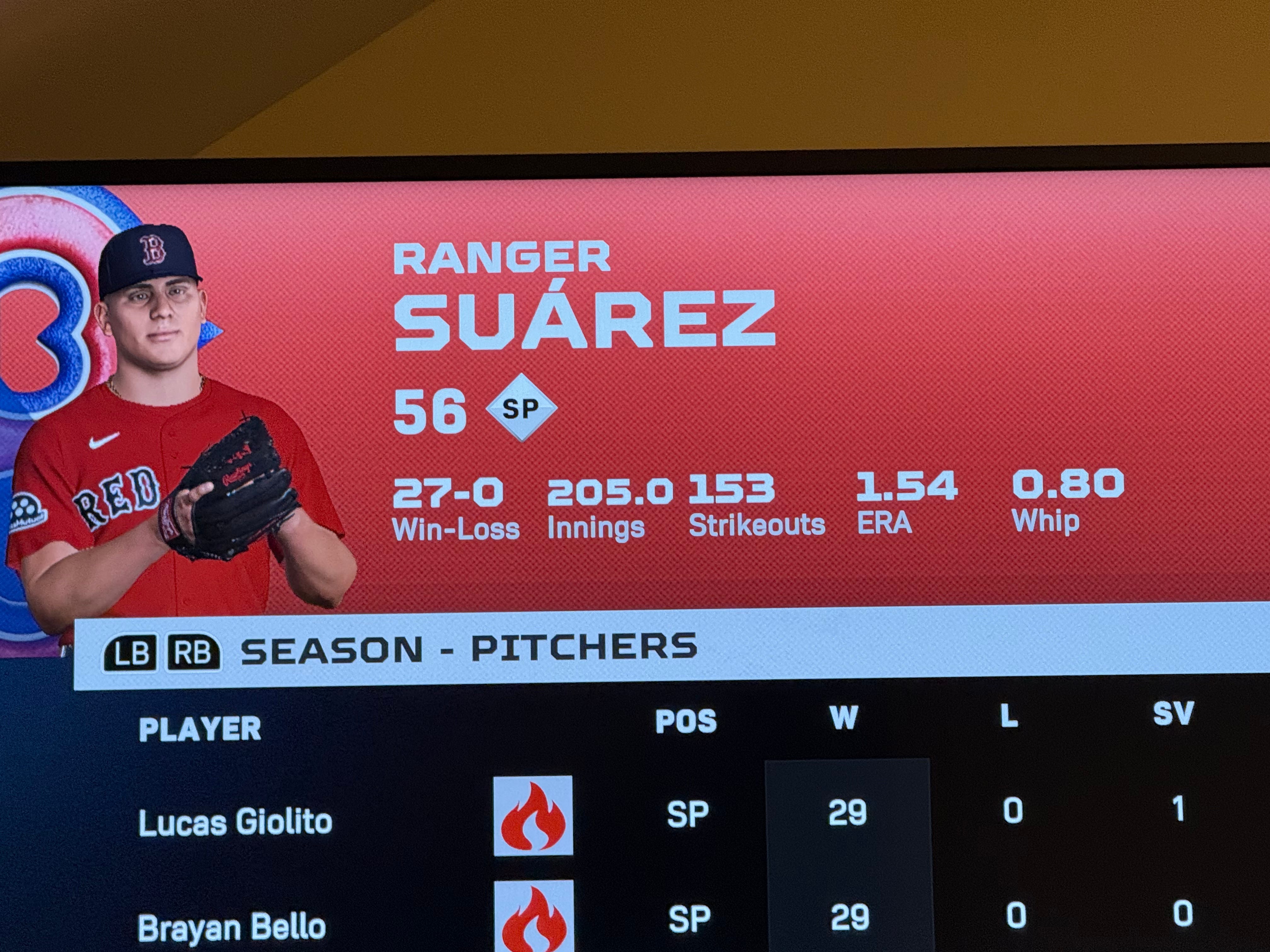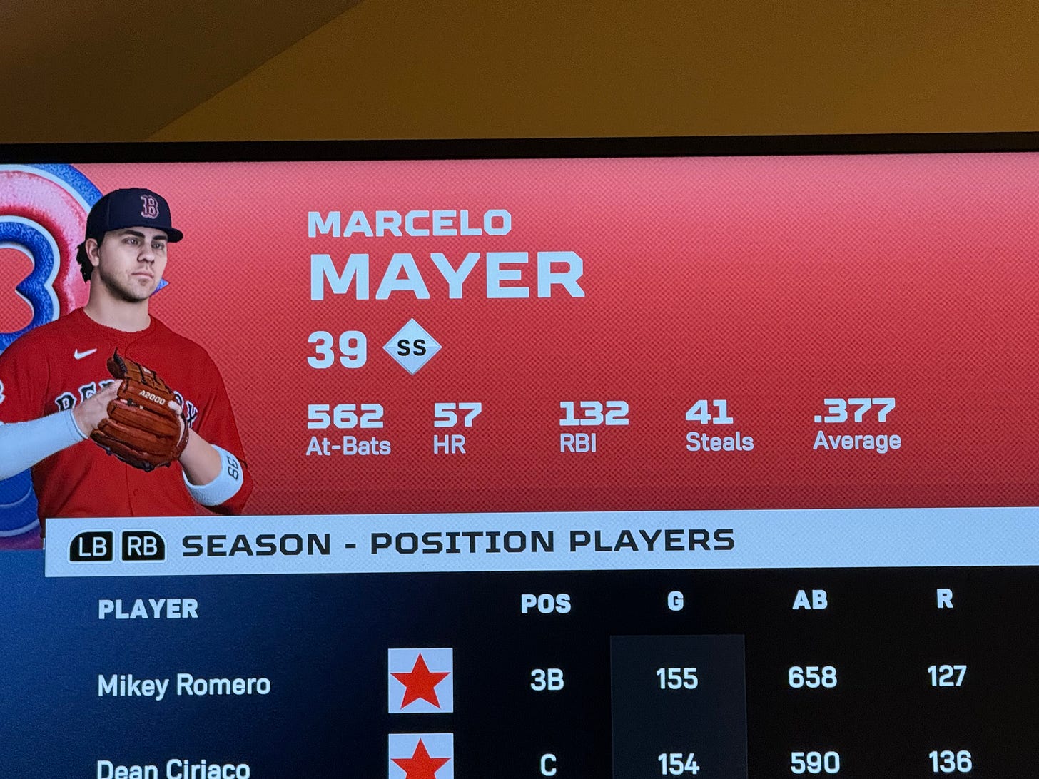 Now, Bello was great, don’t get me wrong. He set the single-season strikeout record with 394 and honestly could have thrown 450 if I didn’t put him on an innings limit. I just don’t think he was as big a game-changer as Roman Anthony.