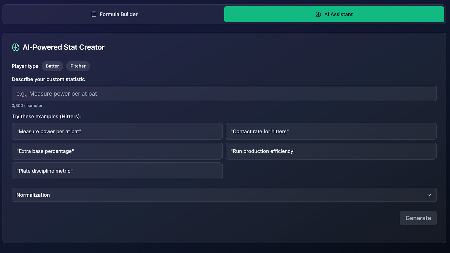 The primary motivation for creating this website was to develop an app that enables any user to easily create their own analytics. We even built an AI tool that allows users to describe what they want, and the model will provide them with the statistics it thinks work best.