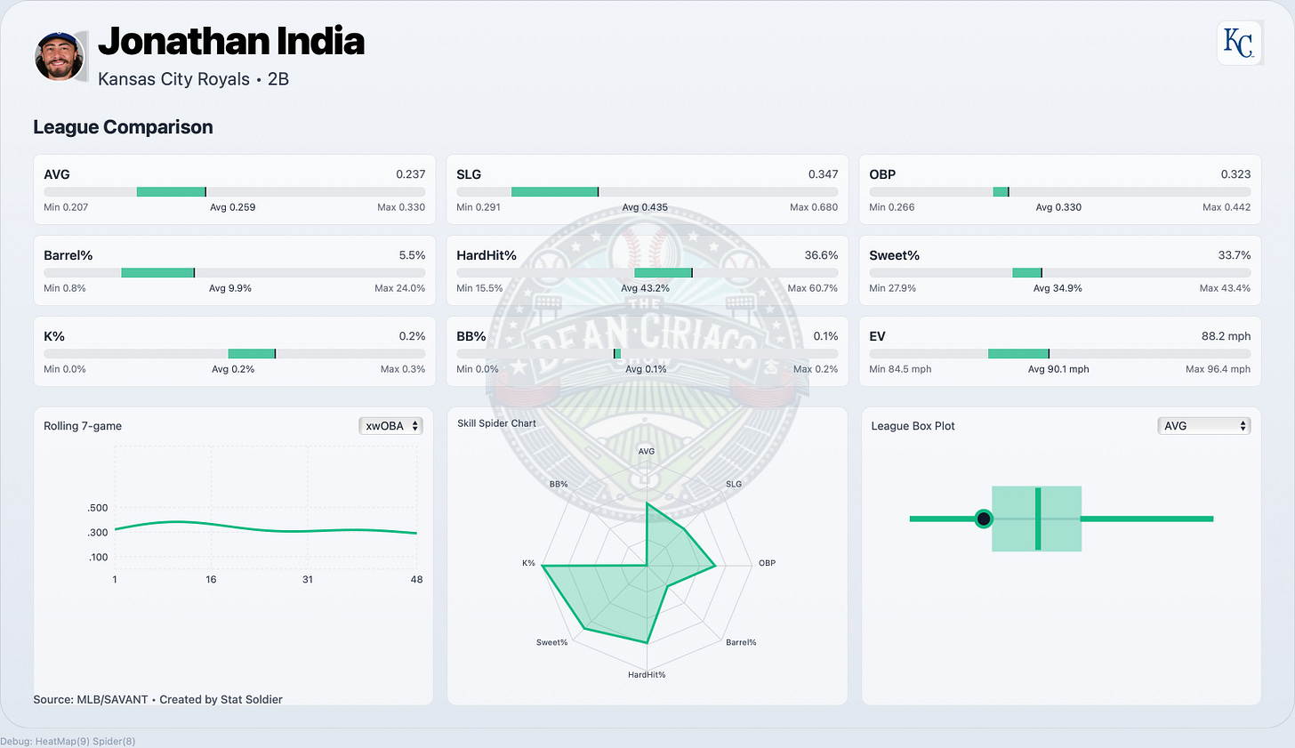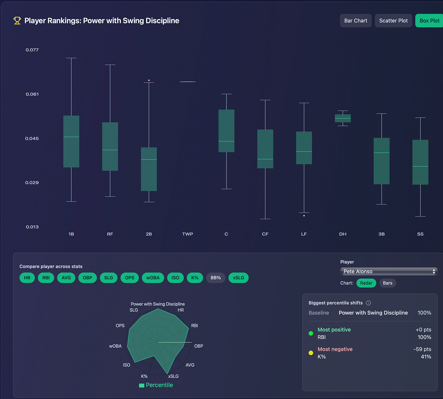 Today, I have softened on analytics and can see the beauty of diving into them when you really love the game of baseball, to the extent that a few months ago, I created my analytics. I combined some of baseball’s most popular savant percentiles into one 0-10 normalized stat. Is it perfect? No, but it was mine, and it was cool. I wanted a place where I could easily store it, so I created a website with my friend that would automatically do all the rankings for me. The entire idea was to create an analysis that the common man could understand. Rather than worrying about all the percentiles, bam, here is a simplified score.