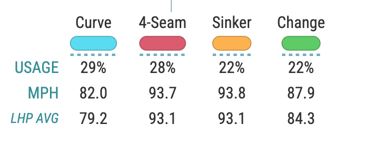 When looking at Lodolo’s stuff he possesses a 4-pitch-mix from the left side:
