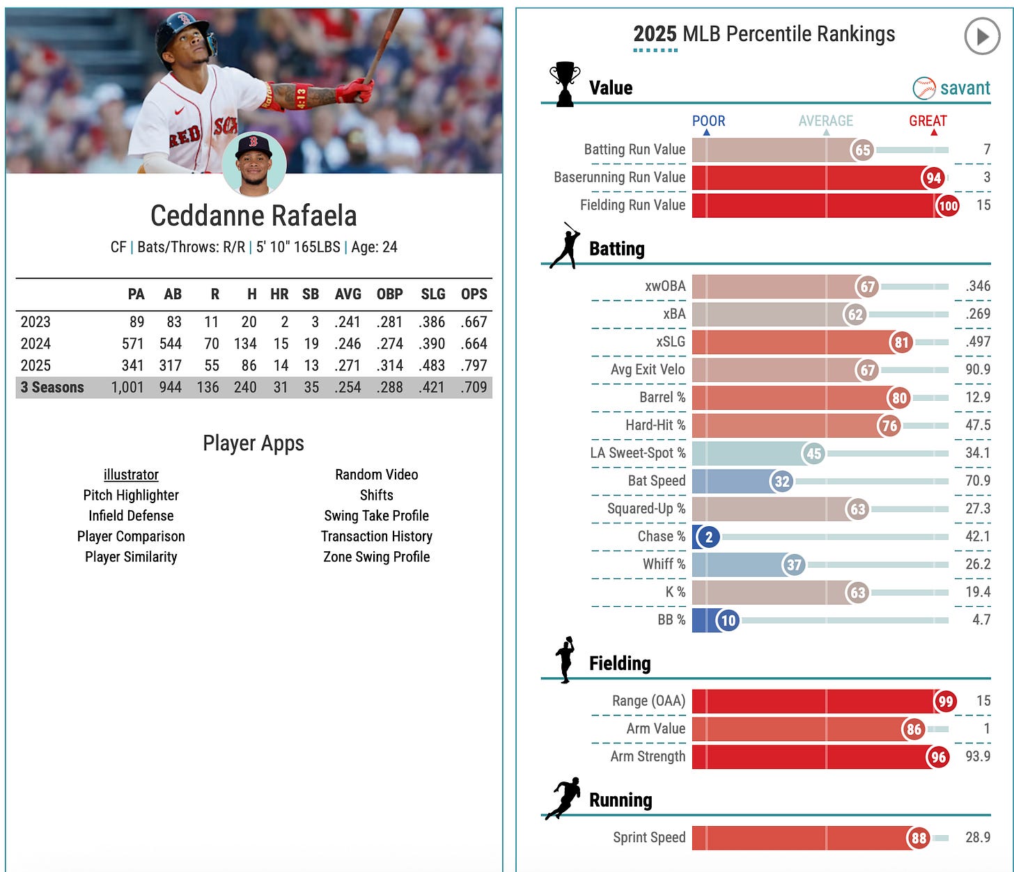 Outside of Pete Crow-Armstrong, Ceddanne Rafaela is the best fielder in baseball right now. That would be enough to justify his extension last year. But he decided to be one of the best hitters of the summer as well. Currently, he is batting .390 with a 1.400 OPS in July.