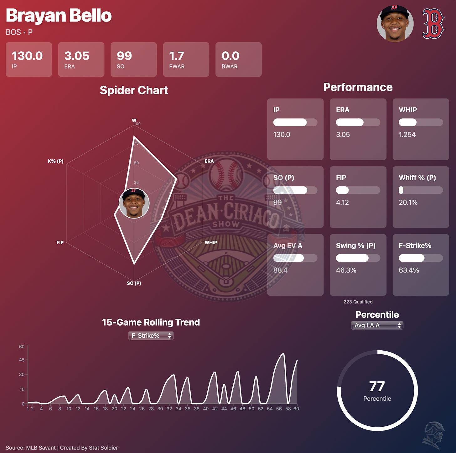 Bello continues to be this generations Pedro Martinez against the Yankees. As you can see in the graphic below, his expected numbers would indicate a