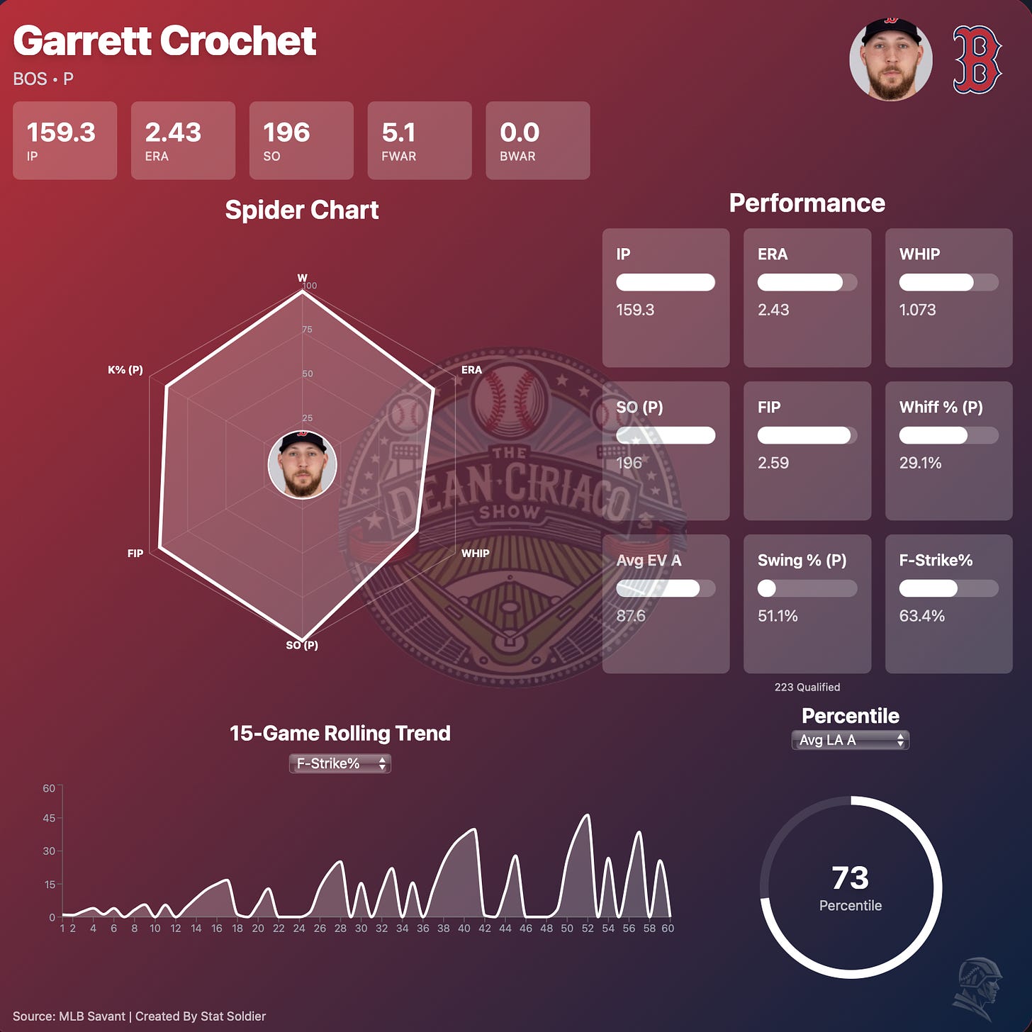 Crochet, in my opinion, put himself back in the Cy Young lead with this performance. The numbers are almost dead even, and Crochet has proven to step up in big games.