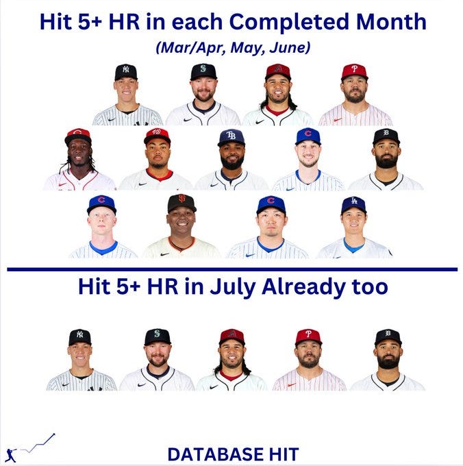 There’s no signs of him slowing down either. Greene is one of five hitters in all of baseball to hit 5+ HRs in each month this season, including July which has two weeks left of games to be played. The consistent power output so far has his rest of season projections at 10-13 HR, 32-35 R, 35-40 RBI, and a 125-135 wRC+. We’re looking at a potential 35+ HR, 85+R, 100+ RBI output from a 24 year old.