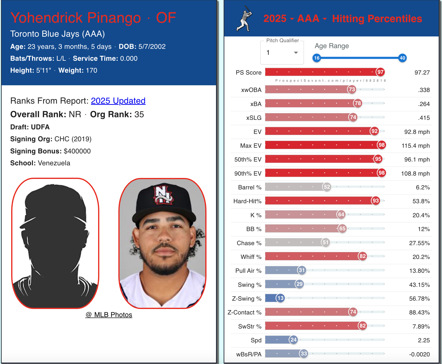 Before diving into Pinango and what he offers Toronto, I want to credit a couple guys and platforms that have been on this guy for awhile. @SportsAveTwist and @ThaGreatOne99. Go give these guys a follow for some of the best Blue Jays and baseball coverage out there!